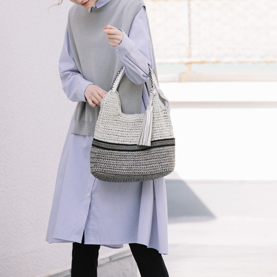 手編みのかごバックが、夏のコーディネートに爽やかなアクセントをプラスします。バイカラーデザインがおしゃれで、カジュアルからリゾートスタイルまで幅広いシーンで活躍します。持ち手が広くてしっかりとした作りなので、荷物もしっかり入れられます。軽量で使いやすいので、旅行やデイリーユースにもぴったりです。夏らしい爽やかなスタイルを演出したい方におすすめの一品です。